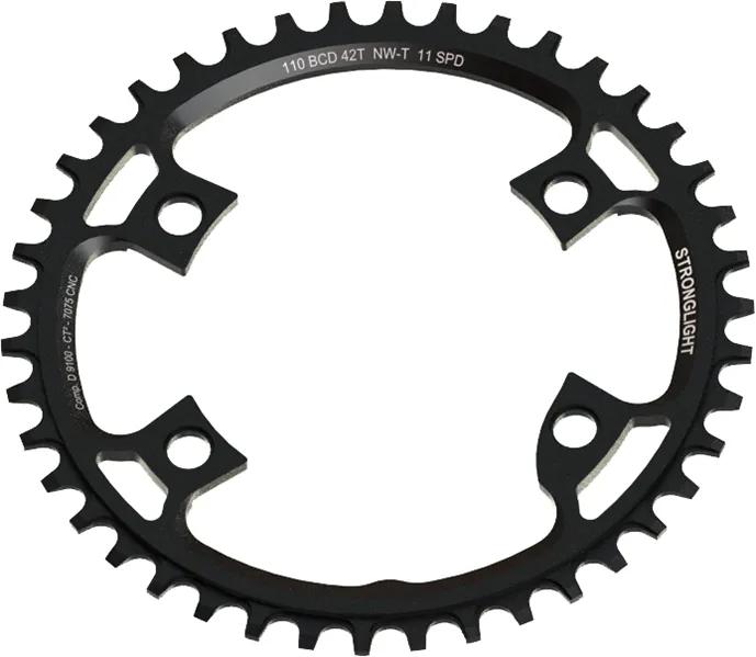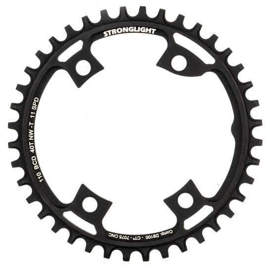 STRONGLIGHT kettingblad "Gravel 4-armig, voor 11-speed, mod. 19, 110 mm boutcirkel, aluminium 7075 T6, zwart SB-pakketmet CT2 keramische teflon coating, zonder Kettingbladbouten, compatibel met Shimano Dura Ace FC-R9100, gewicht 78 g i.› 40 tands